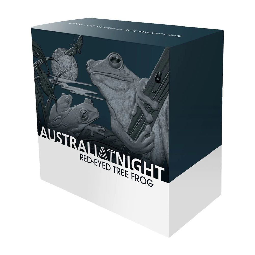 Discover the captivating beauty of Australia’s nocturnal wildlife with the 2024 $1 Australia at Night Red-eyed Tree Frog 1oz Silver Black Proof Coin.