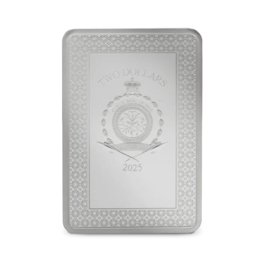 The Public Seal of Niue on the coin’s obverse is framed by an ornate border.A Mark of Authenticity and the coin’s unique number are included on the packaging.