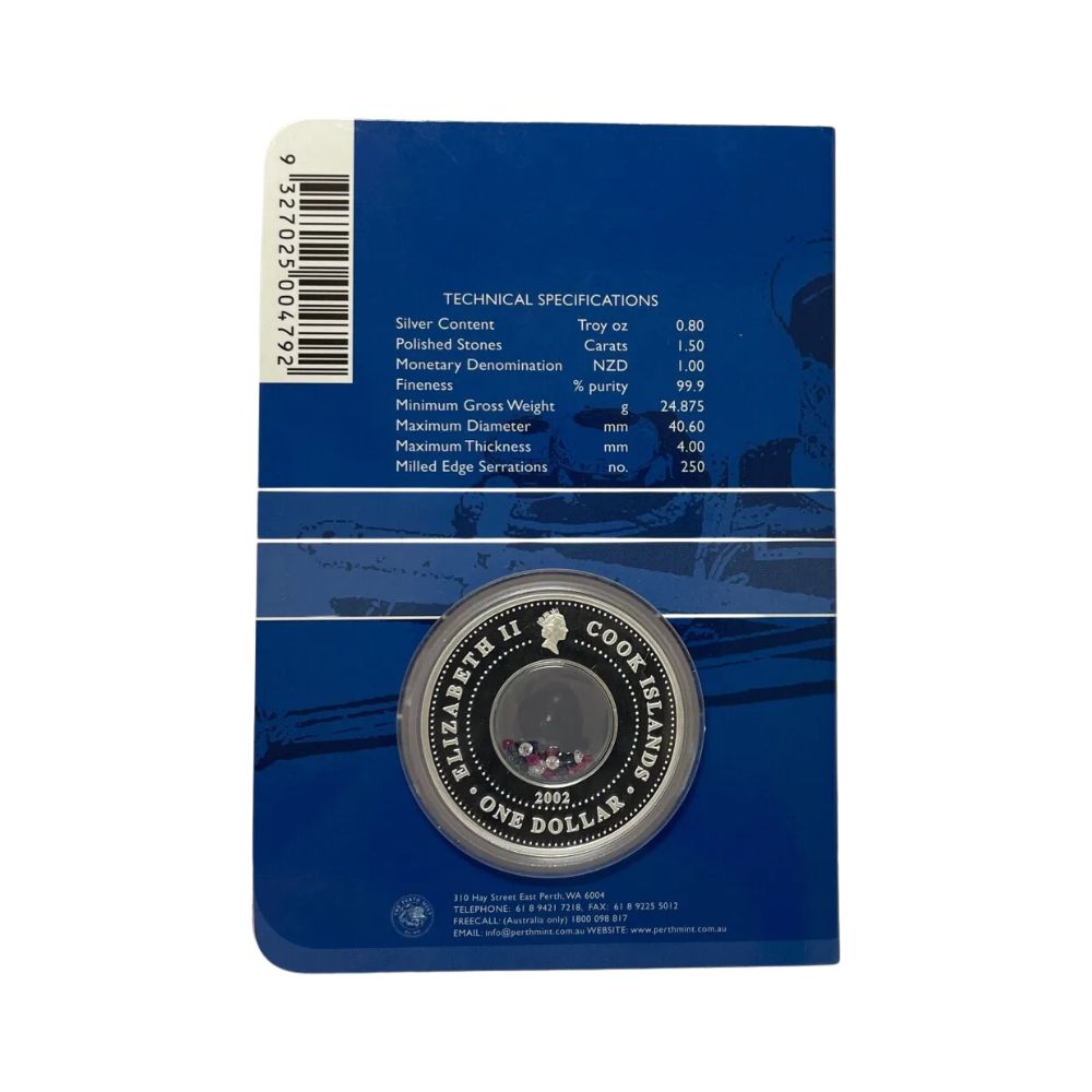 The coin was issued under the authority of the Government of the Cook Islands and was Minted by the historic Perth Mint. Housed in an innovative folder case, which allow collectors to see the encapsulated gems even with the folder closed.