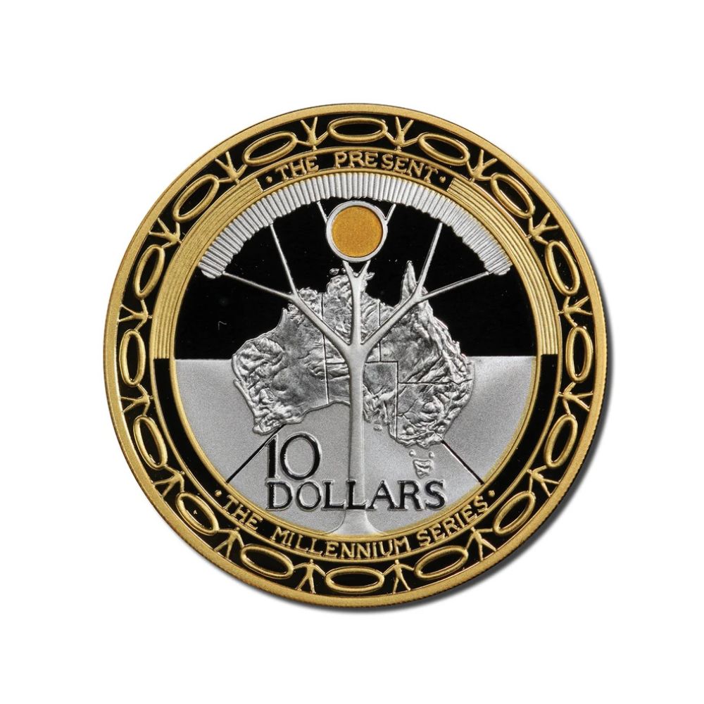 This remarkable silver commemorative coin was issued by the Perth Mint to mark the end of the 20th century and is one of the first Australian coins to feature a pad-printed colour reverse.