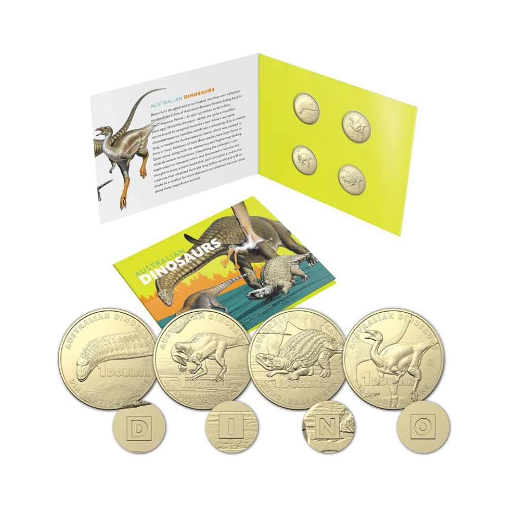 To celebrate the 2022 Collecting Month, Australia Post have partnered with the Royal Australian Mint and returned to the age of the dinosaurs to strike four amazing Australian Dinosaur one dollar coins.